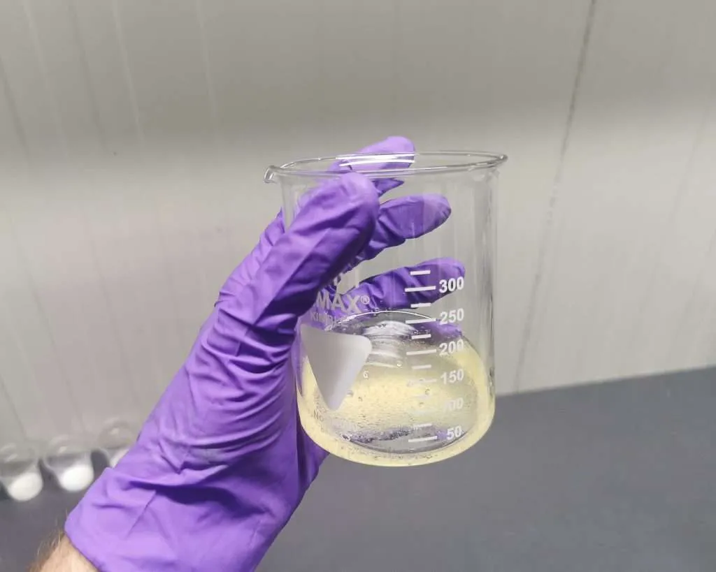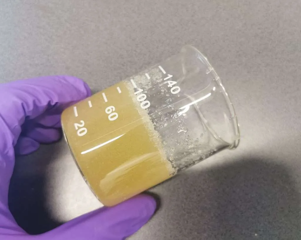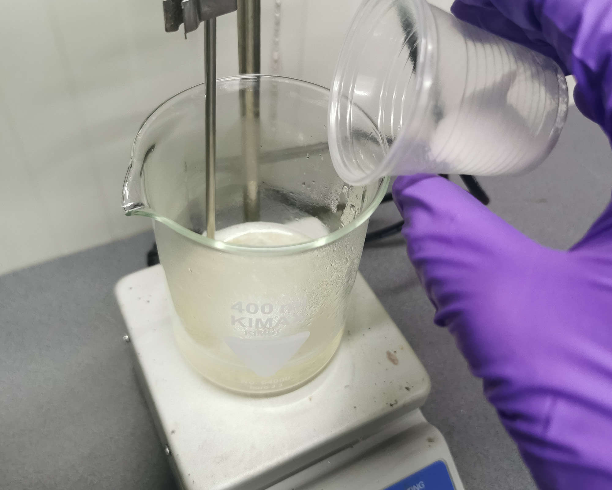 In a separate beaker, slowly add 18 grams of gelatin into 80ml of distilled water. Donโt dump it in all at onceโsprinkle it in gradually to avoid clumping. Let it soak thoroughly; this gelatin will be added later in the digestion phase.