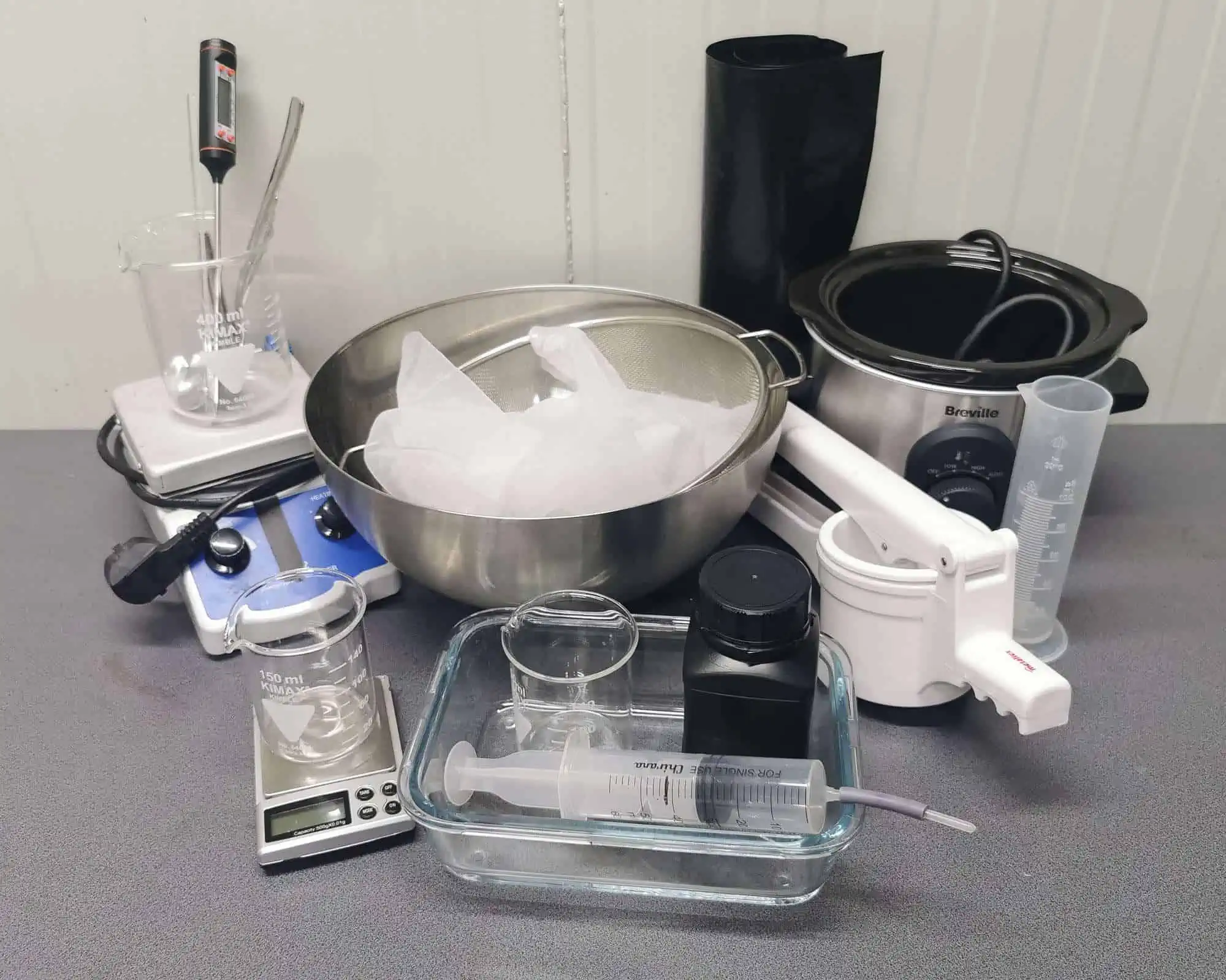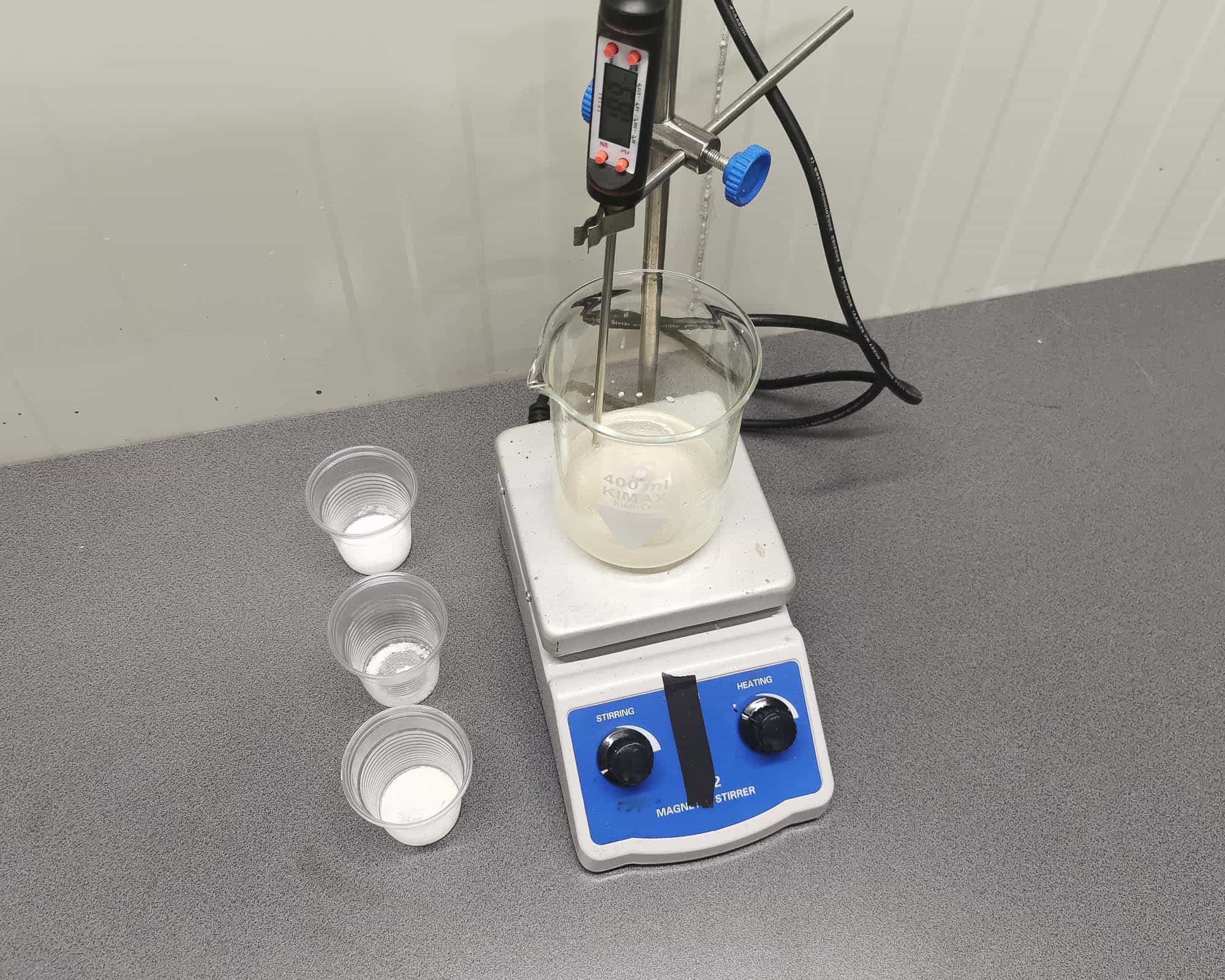 - 3 tempered glass beakers: one 400ml and two 150ml
