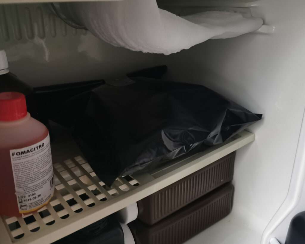 Pour the finished emulsion into your baking tray, place it inside the lightproof black bag, and chill it in the fridge for a few hours until it sets into a firm jelly.
