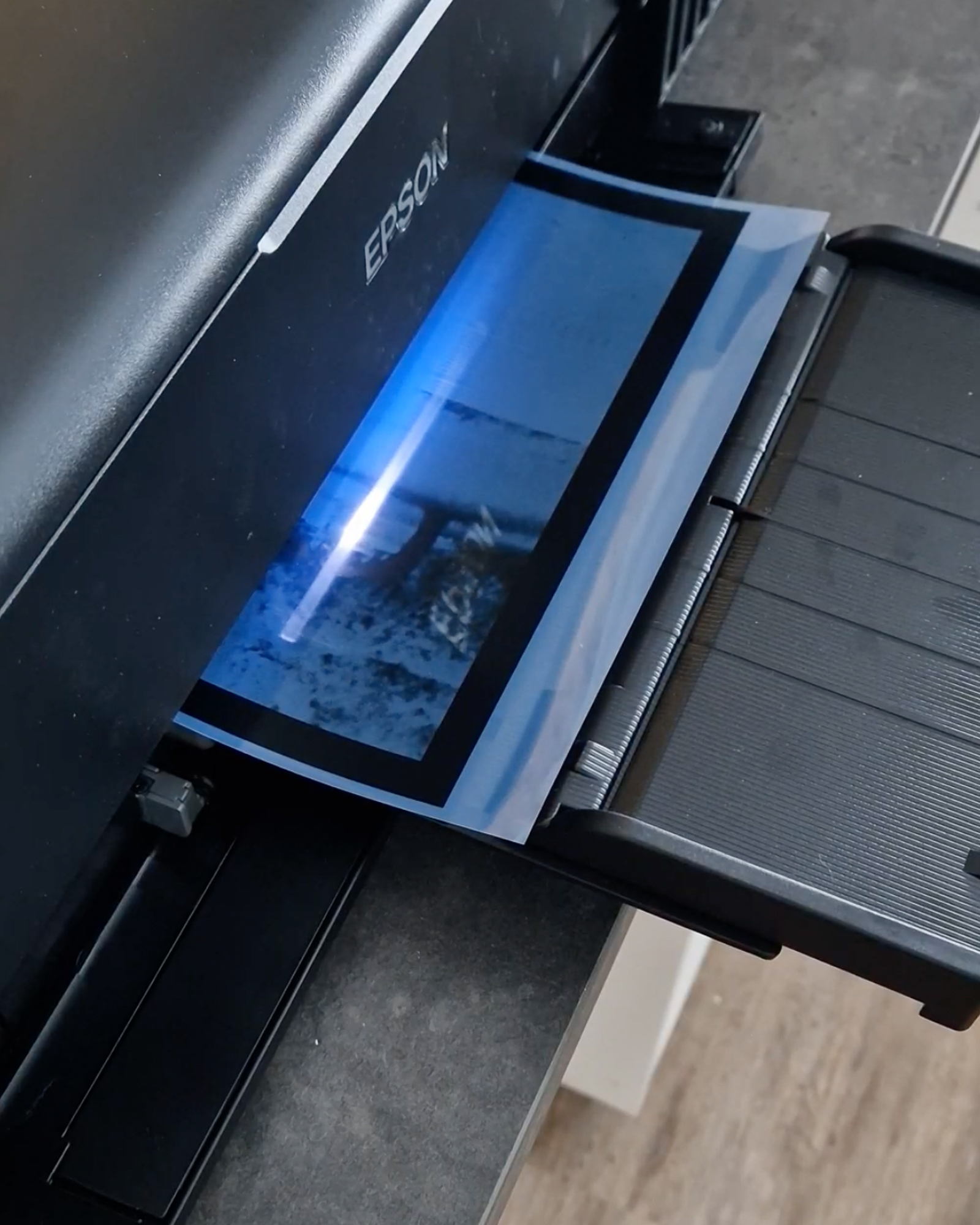 Once tonal adjustments were complete, the image was printed onto transparent inkjet film using an Epson 8550 printer. This printer offers excellent sharpness and reliable density control, both of which are critical for contact printing.