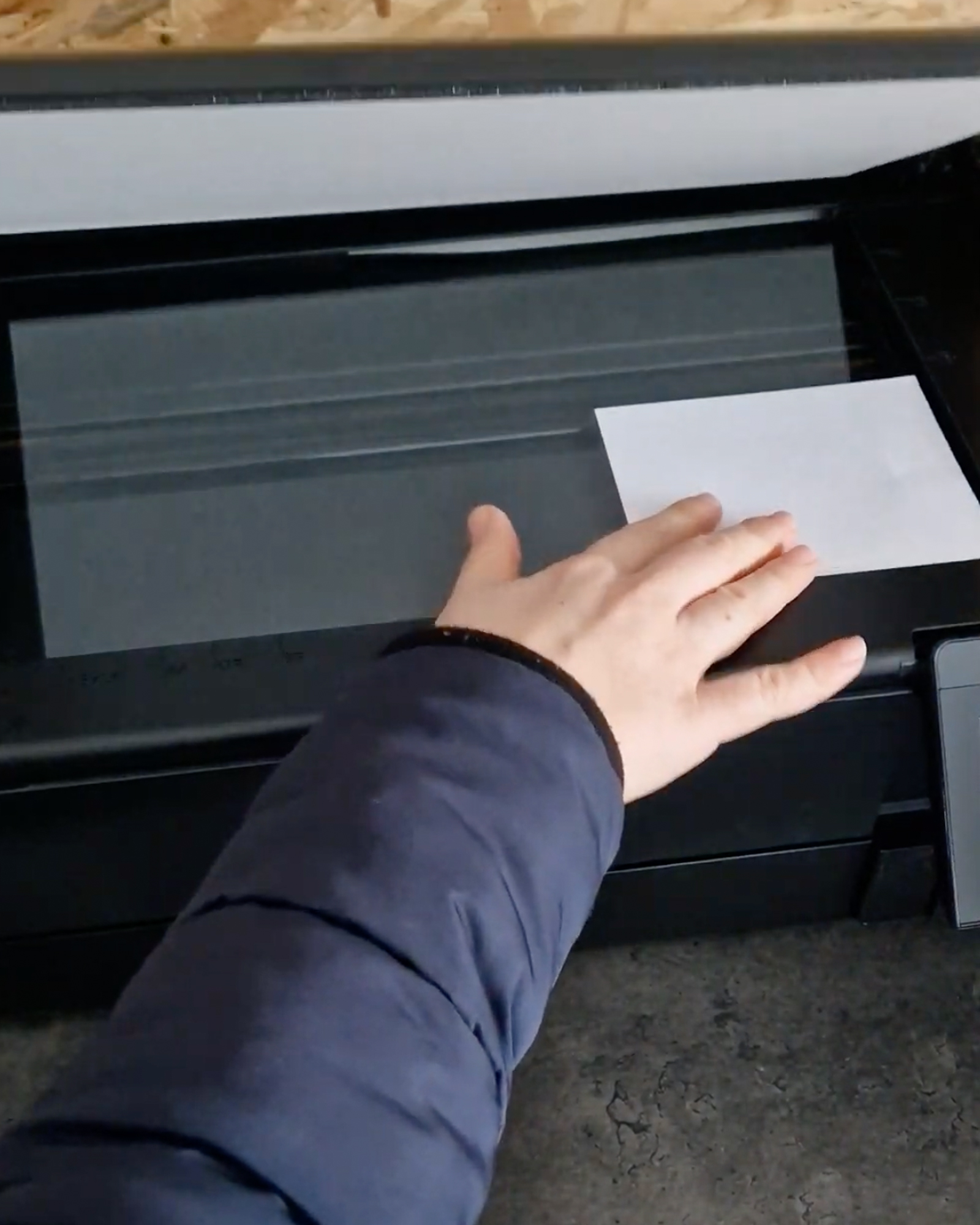 Before printing, the image must be mirrored. We actually forgot to do this ourselves, so this is an important detail not to miss. If the transparency is not mirrored, the final glass plate will be laterally reversed.