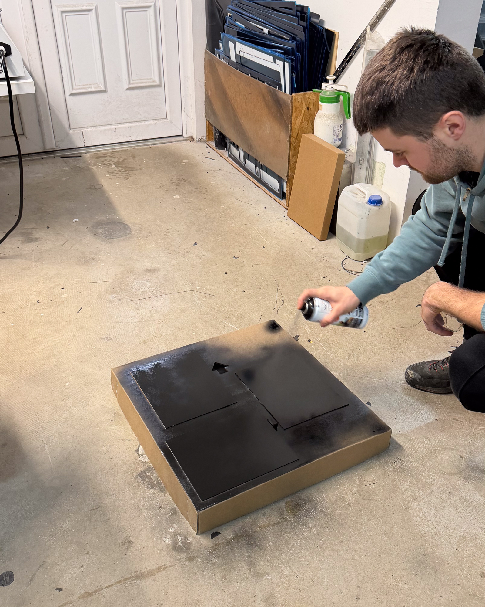 Once fully dry, the plates were spray painted black on the emulsion side using Dupli-Color Next black spray paint.