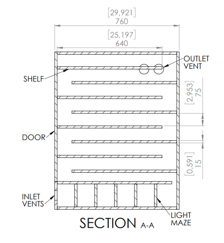 Two years later, I’m happy to report that the cabinet has held up perfectly, even after drying tens of thousands of plates. Nothing has broken, and we have never experienced any light leaks. The cabinet has significantly increased our production capacity, and we are already planning to build a few more to expand further.