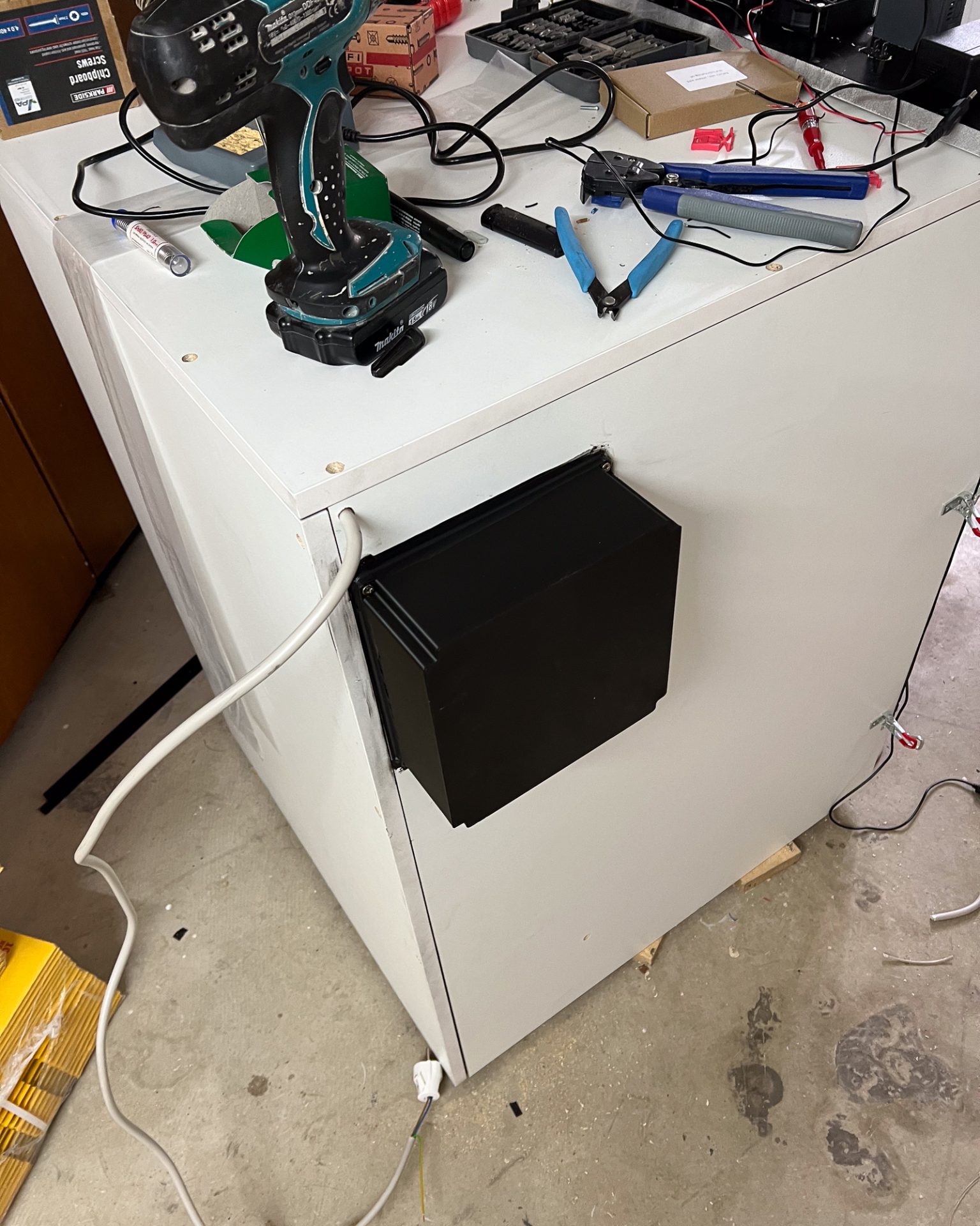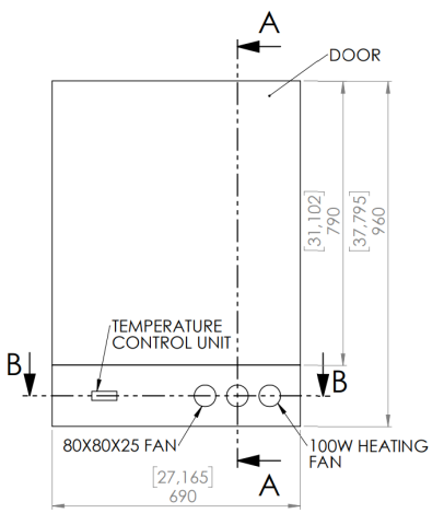 It was all pretty straightforward. We took the sketches to the local woodworking shop, and they cut all the framework parts for us from 16-18mm white Multilayer Faced Chipboards using CNC. While waiting for the cutting to be completed, we ordered all the required hardware parts such as fans, heating units, and latches. After about two weeks, we had everything in the workshop and were ready to start the build.