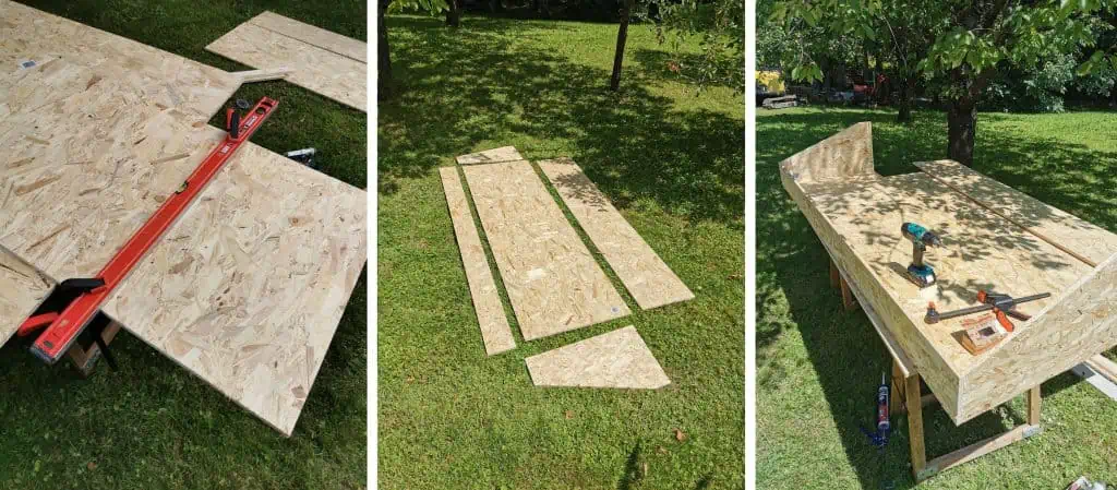 When I got all the measurements done I started cutting all the pieces. Boards came in a size of 2500x1250mm so it was quite a challenge to move them around. They were cut according to my plans and it was time for screwing and gluing. I had to be careful as the plates can chip off easily but I managed to put it together nicely.
