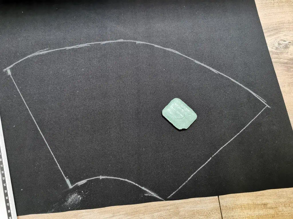 As I wont be needing the whole 1,5m long strip I had to cut out the fabric I will need. I used a piece of chalk and left around 1,5cm extra on the edges. I cut the fabric with scissors.