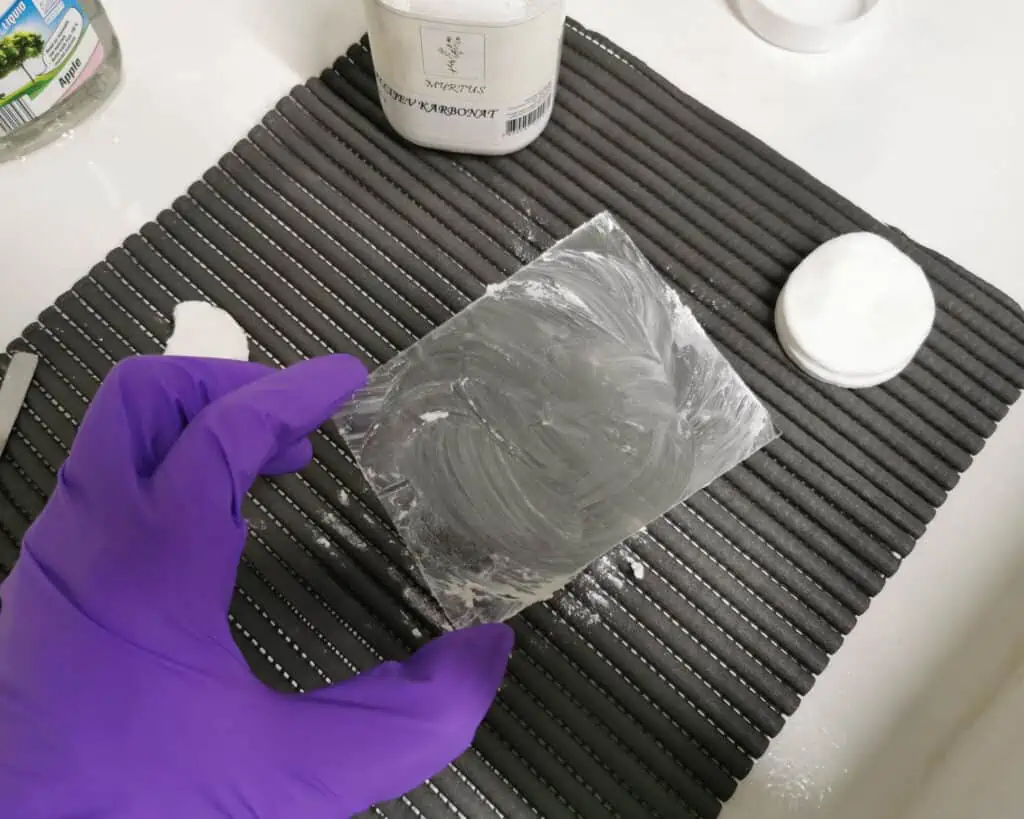 There are a few ways to clean glass, but this is the method Iโ€™ve found most reliable. I clean each plate using a mix of calcium carbonate, dish soap, and warm water. Sometimes I combine them into a paste, but more often I apply them separately.
