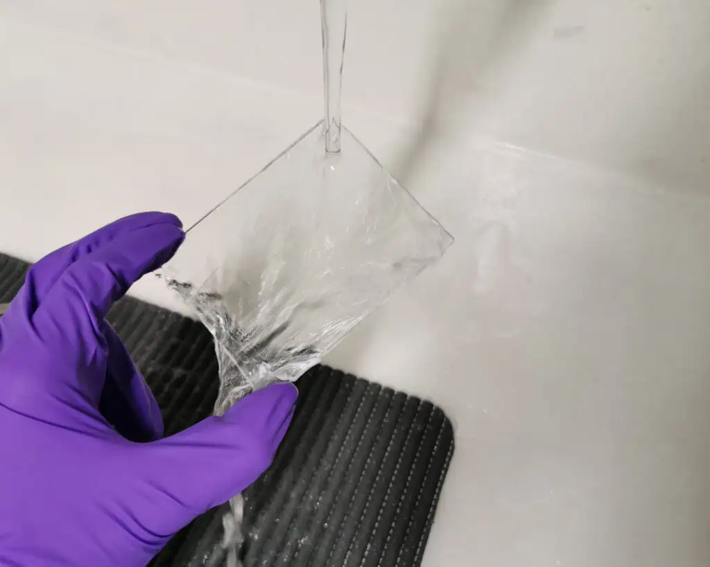 While the emulsion is melting, you can start preparing your glass plates. Be sure to wear gloves, not just for safety, but also to prevent contaminating the glass with oils or fingerprints.