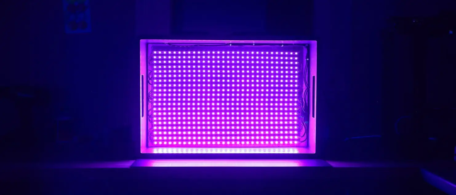 So, I started searching for LEDs, which are much cheaper, produce less heat, and are also much smaller. In the end, I ordered two 5m strips of the following LEDs: SMD 5050 UV LED 5m Strip.