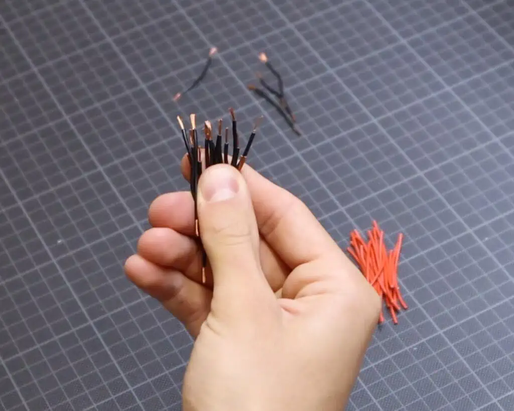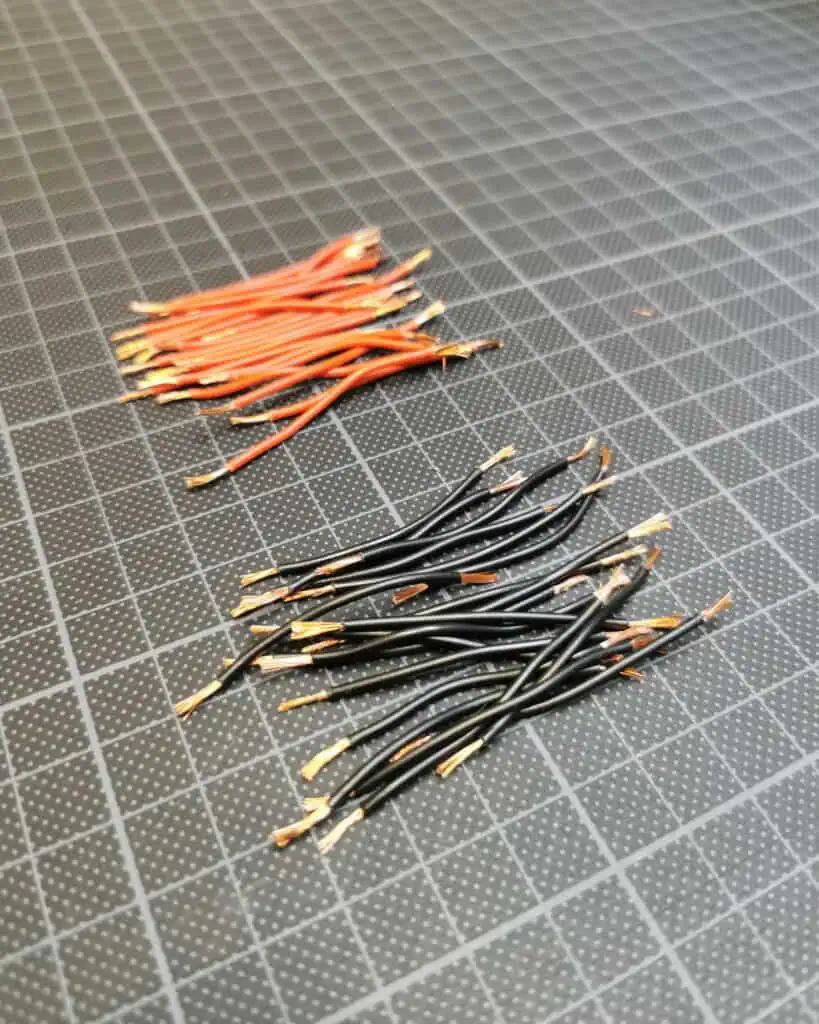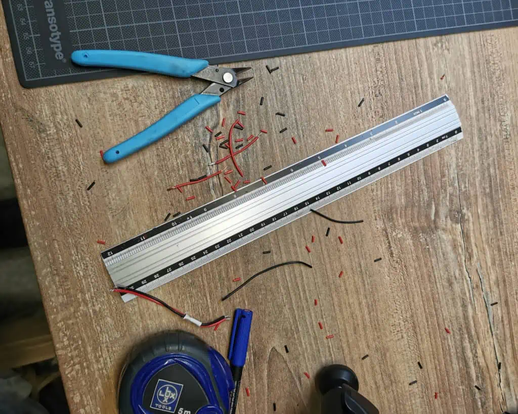 Next step was cutting two 5m long LED strips into twenty 50cm long pieces, which would be stacked in rows. I thought I would just be able to cut them with scissors, but it turns out that they are soldered together at every 50cm, so I had to desolder each strip. It was a long process, but I didnโt mind as long as my hands were working.