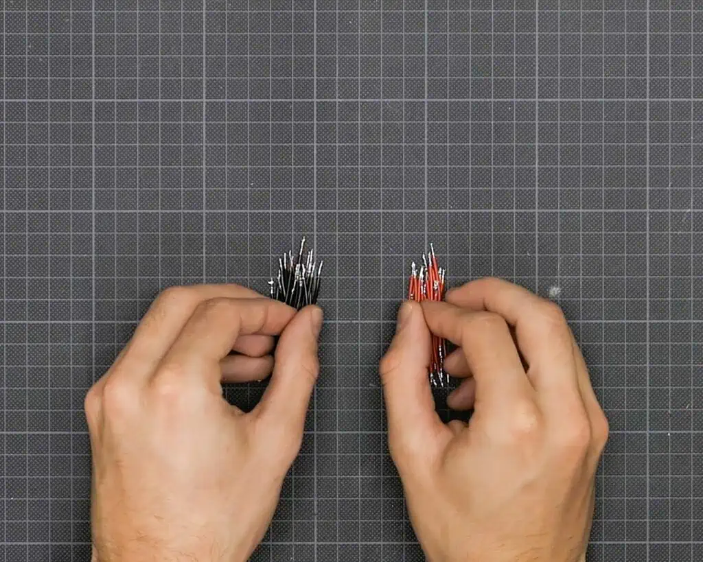 The wires in these cables were tiny, but I managed to get it done. I was left with two plugs from each LED strip, which I didnโt really like, as there were already too many wires. So, I decided to join them together, leaving only one plug for both.