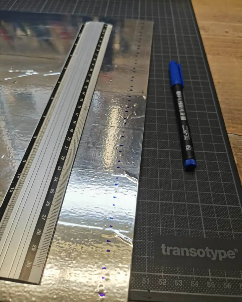 Since plywood is not the best surface for adhering, I decided to cover the front with some reflective aluminum tape, which also helps bounce back all the light that might otherwise be lost.