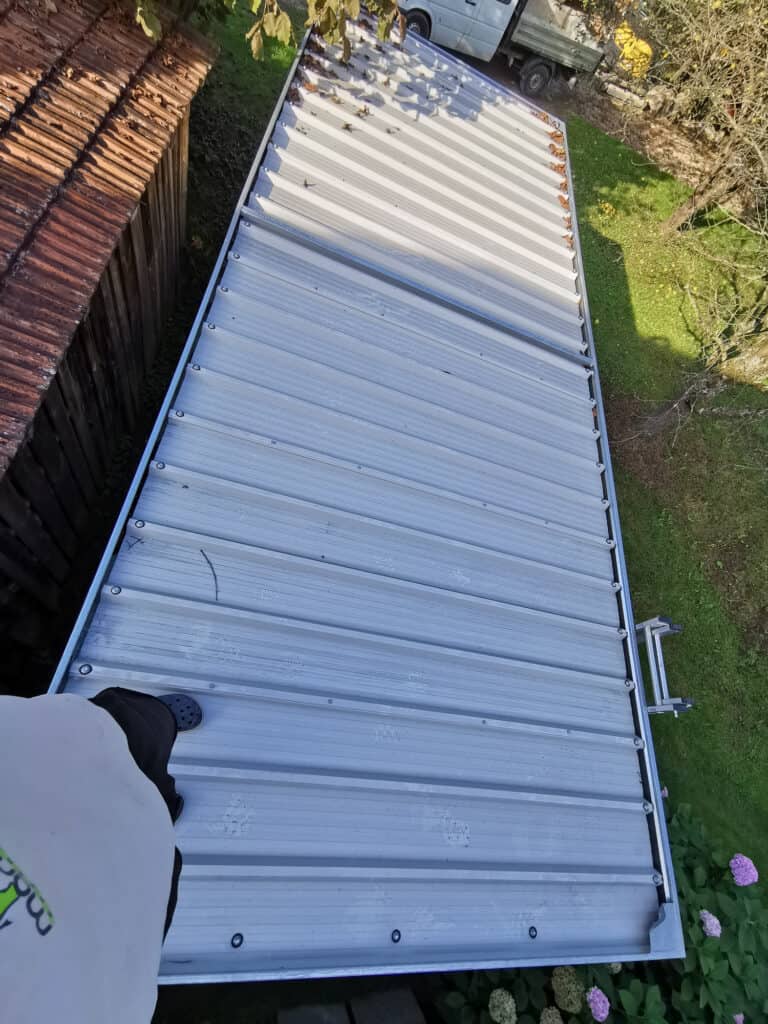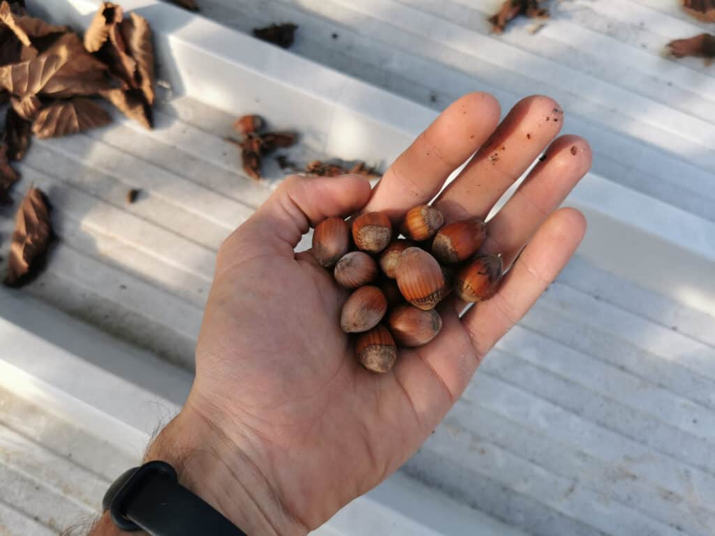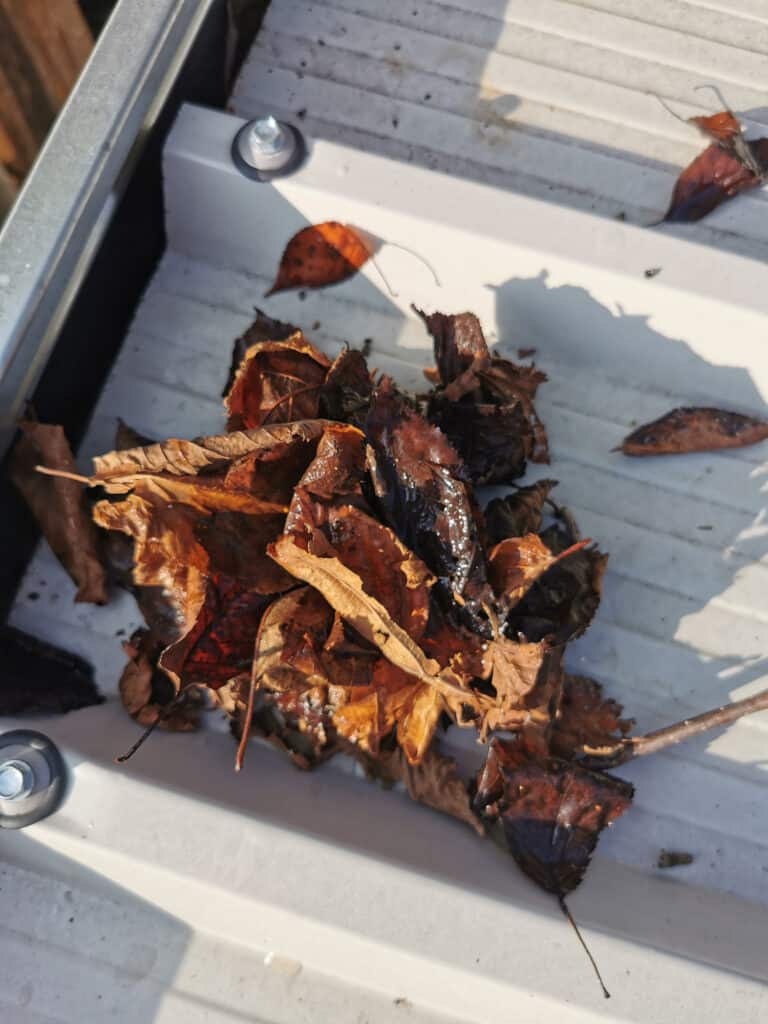 October is usually the rainiest month of the year in Slovenia and this year it sure is! We had a long and warm summer so the cold front moving in was just a matter of time. There were some big storms forecasted for the end of the first week in October so I had to clean the water drainage on top of the container. Container is sitting right underneath two trees so there are a lot of leaves falling right on the top clogging the drainage channels. If I would not clean them a pool of water could form on the roof. Because of the pressure water could damage the roof and start leaking into the container. This is why I took the leader and climbed on the top. As expected there were quite a lot of leaves stuck in the drainage pipes but with the help of a metal rod the pipes were clean in no time. As a bonus to my effort I picked some hazelnuts along the way that where waiting for me safely on the top 😀