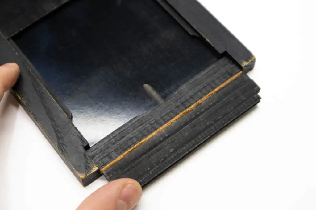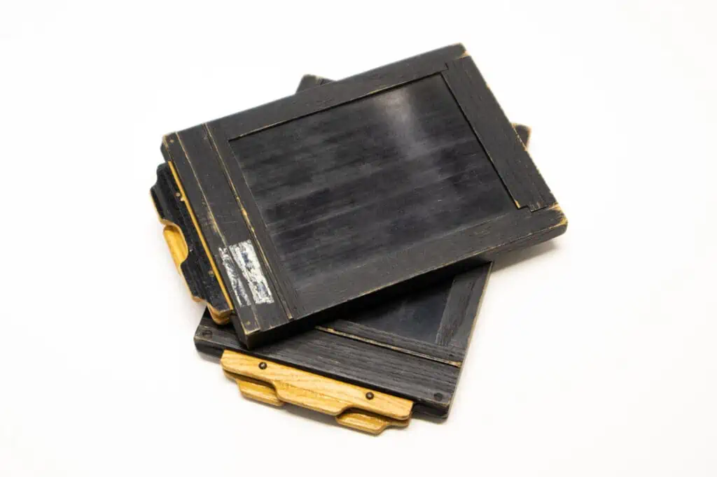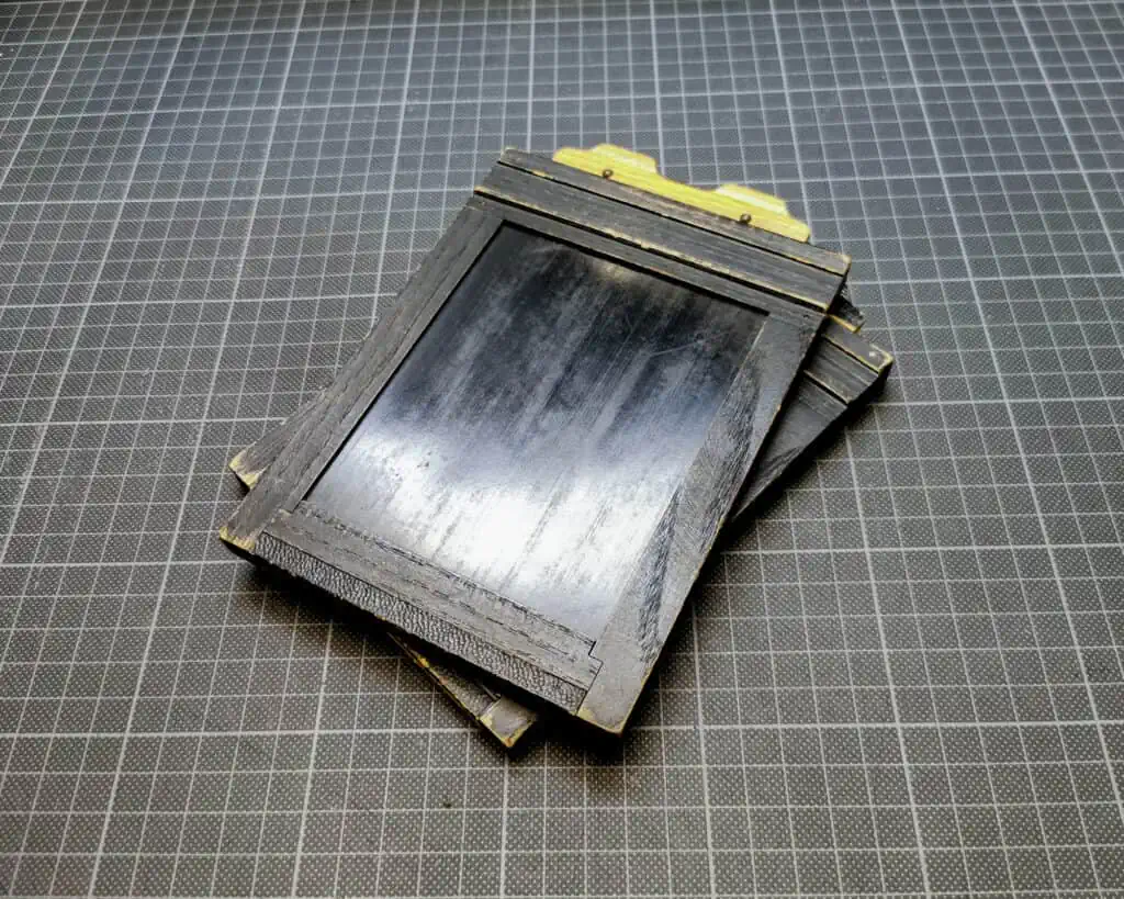 In the first package I opened there were two vintage 4×5 film holders. It turned out they were completely made out of wood which is impressive. I don’t know the brand or the exact year of manufacturing but knowing that flexible black and white film started getting popular with “Safety Film” released by kodak in 1908 I would say they are from the early 20th century. At the moment I am designing my very own 3d printable 4×5 glass dry plate holder so I observed these vintage holders in detail. Design is very similar to the more modern film holders, the only difference I noticed was a light trap for the dark slide. Modern holders use metal spring with some black fabric that closes the slit when a dark slide is pulled out. On the other hand vintage holder seems to be using a simple strip of black felt that is squished with an inserted dark slide and expands when it’s taken out. This knowledge will definitely help me with my own design as the main issue is keeping the light out.