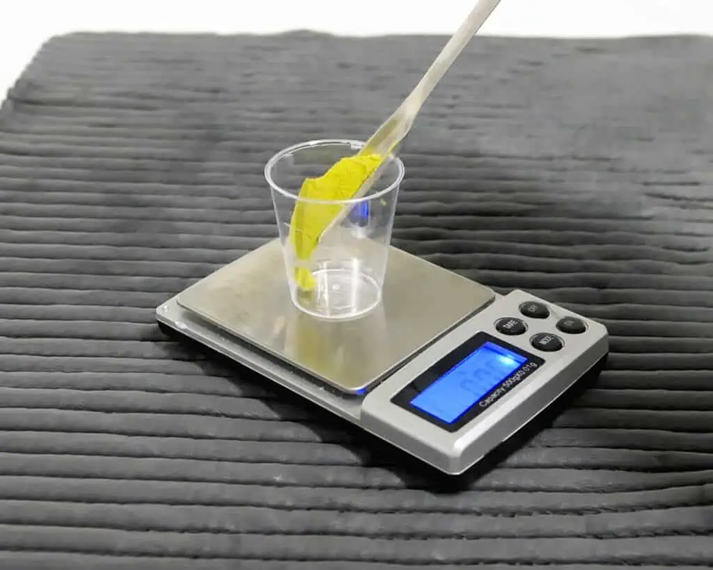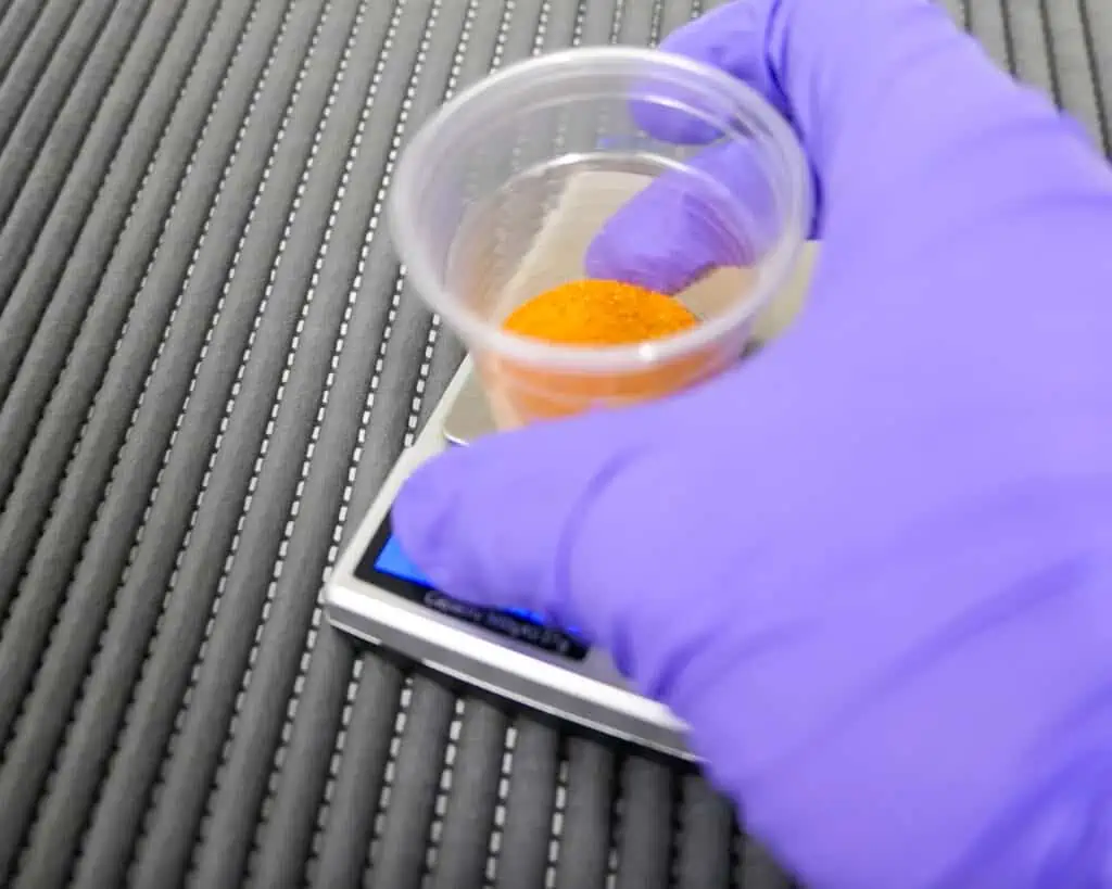 Begin by measuring 100ml of distilled water and weighing 36g of Ferric Ammonium Citrate. After everything is prepared you can start mixing. Try not to add the whole amount of chemicals inside the water at once. Nothing will be wrong, it will only take much longer for the Ferric Ammonium Citrate to dissolve. So add it slowly while mixing. When everything has dissolved you can pour the solution into the storage bottle. I prefer using brown bottles to prevent any bacteria growth.