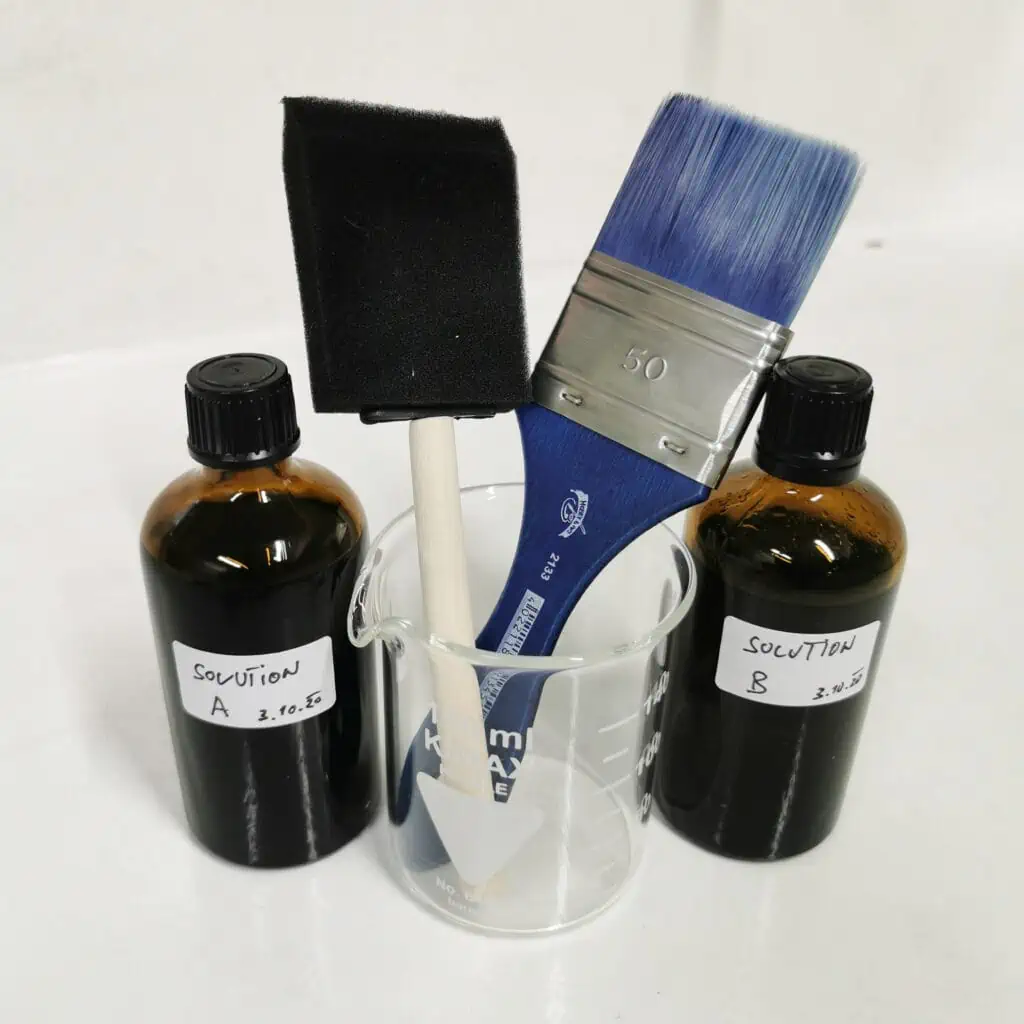 Process it the same as in Solution A. Measure 100ml of distilled water and weigh 20g of Potassium Ferricyanide. Mix them together and pour the solution into the storage bottle.