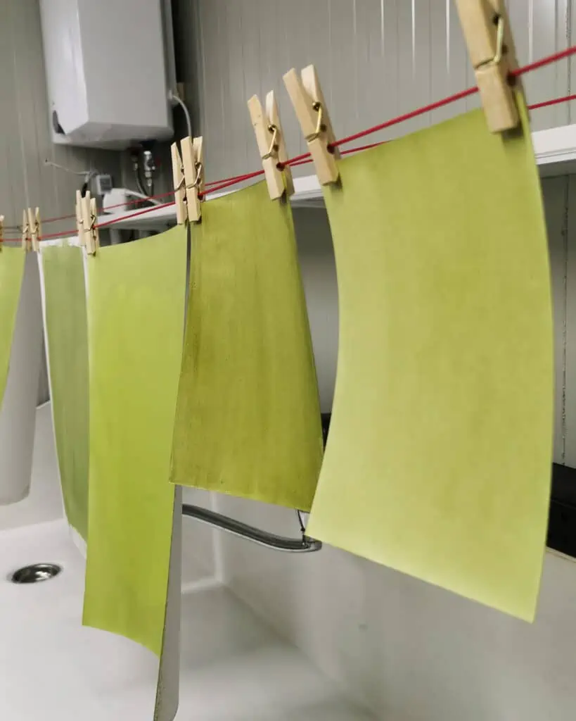 When paper is coated it needs to dry. You can simply leave it laying flat on a surface or hang it. If you would like to speed up the process you can use a hairdryer. I don’t like to use it myself because it often results in an uneven coating…