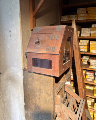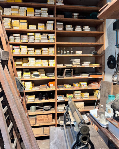 While the filming was happening, I couldn’t resist slipping away on a little treasure hunt of my own searching through drawers, cabinets, and shelves for any dry plate boxes or vintage brands I could find. And let me tell you, what’s on display is just the tip of the iceberg. The museum is packed with photographic history.