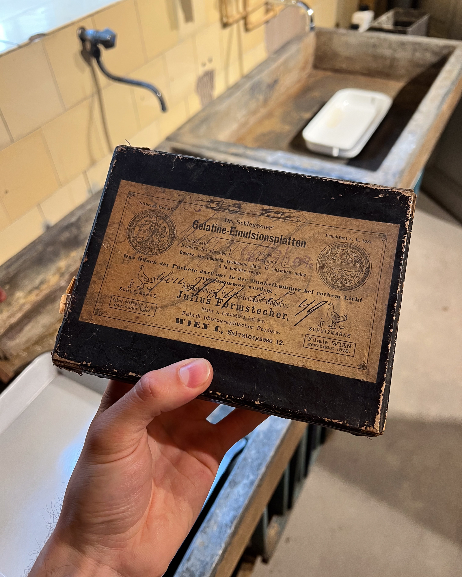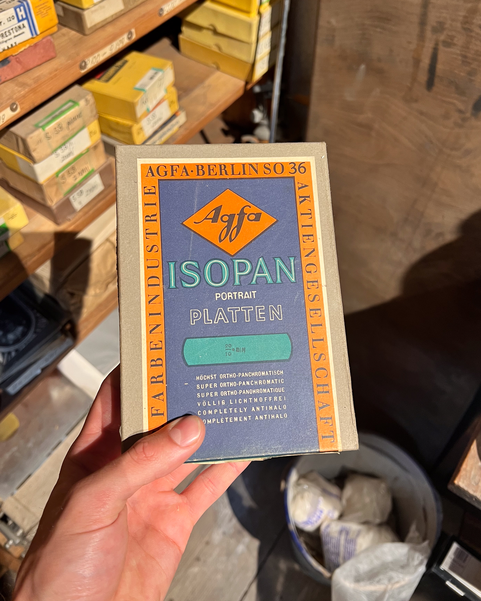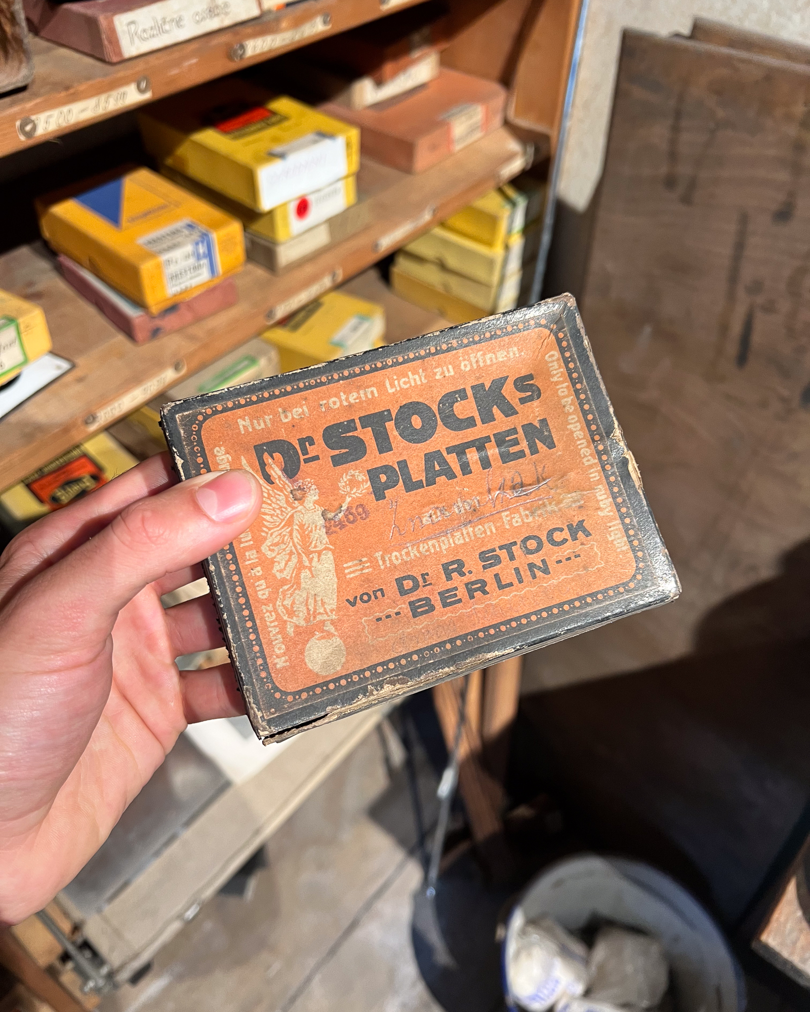 At one point, I even stumbled upon a beautiful old box of Autochromes unfortunately empty, but still, what a find! Maybe it’s a sign that we should start making dry plates again? With our new coating machine soon to be installed… Nothing really feels impossible anymore. 😄