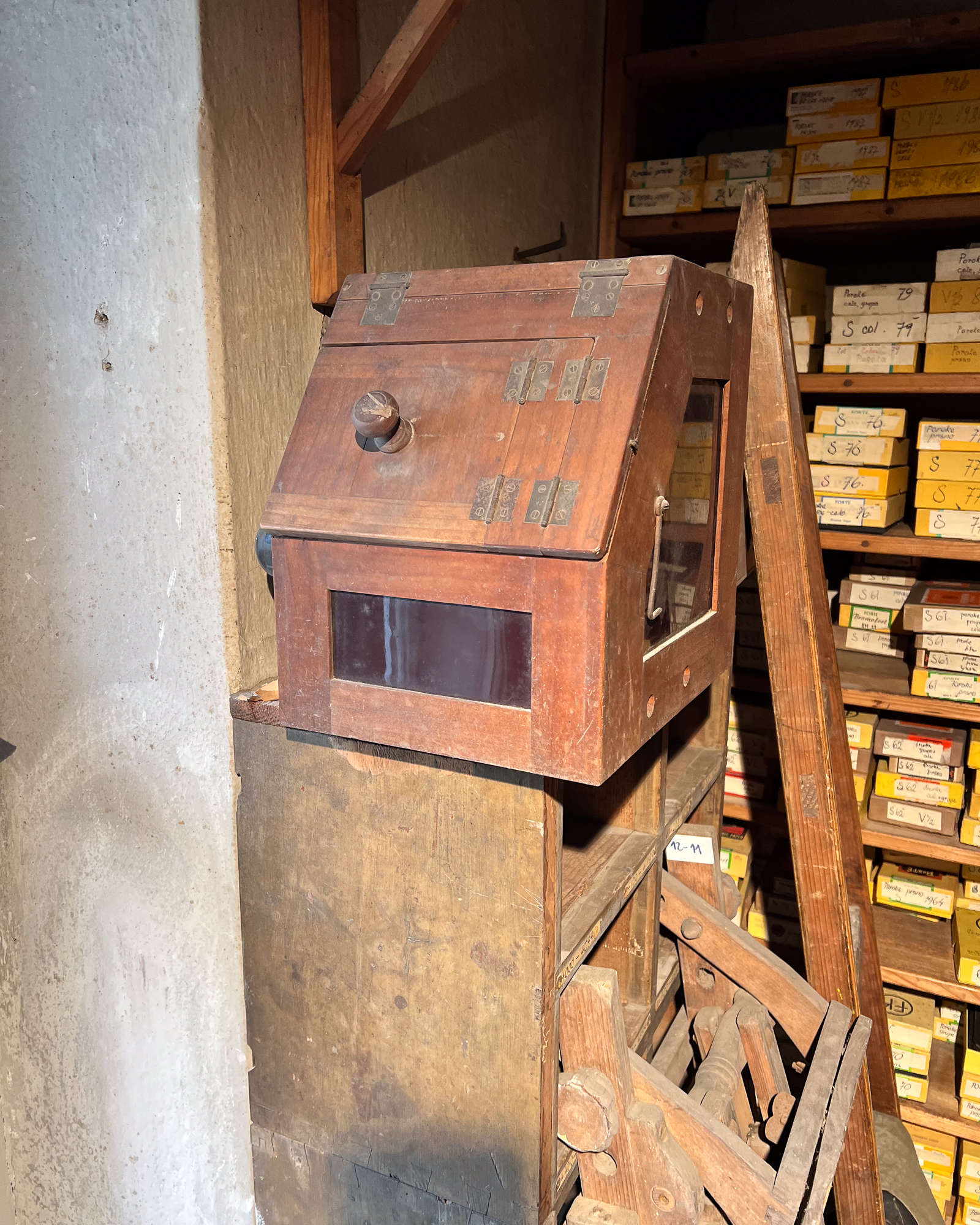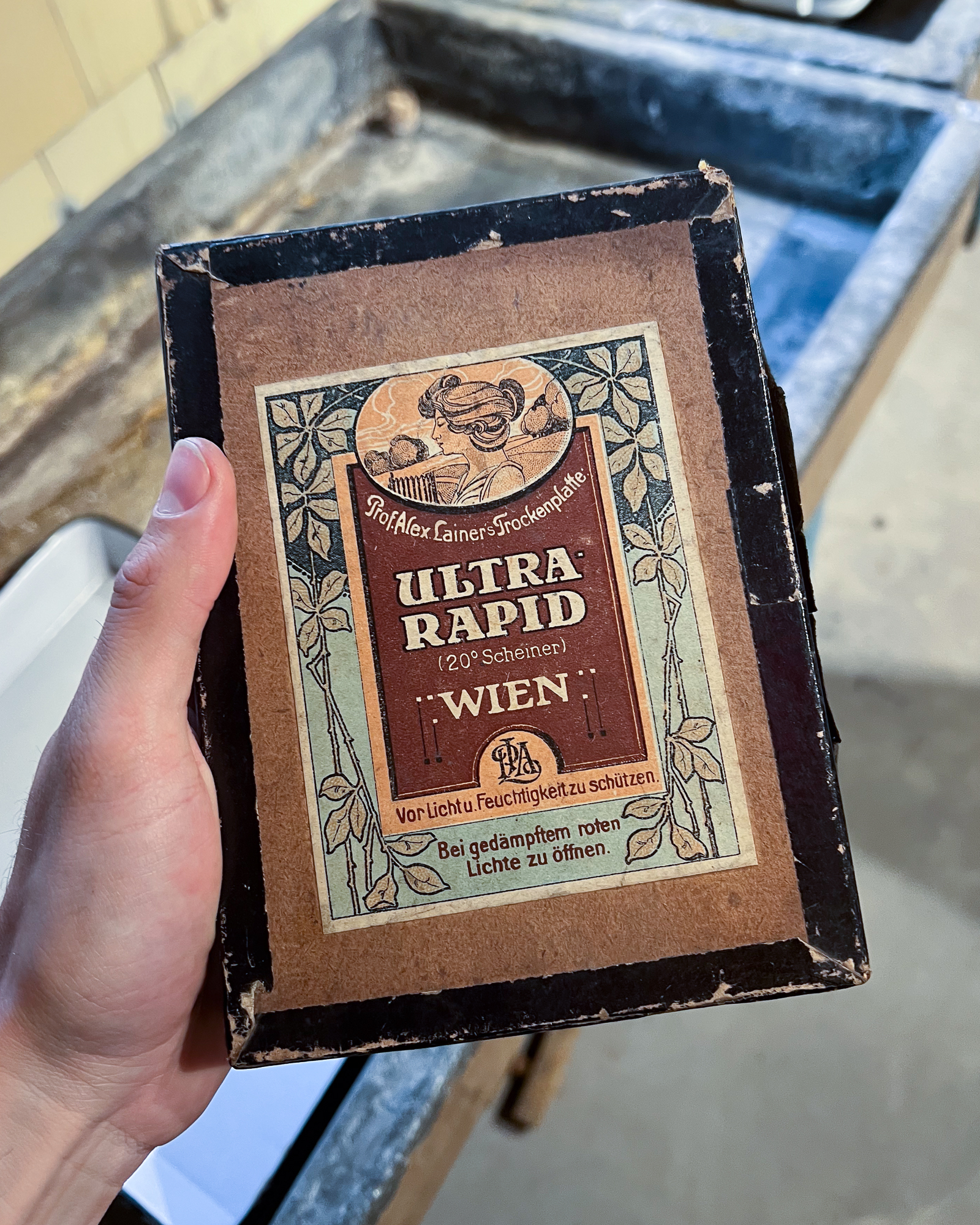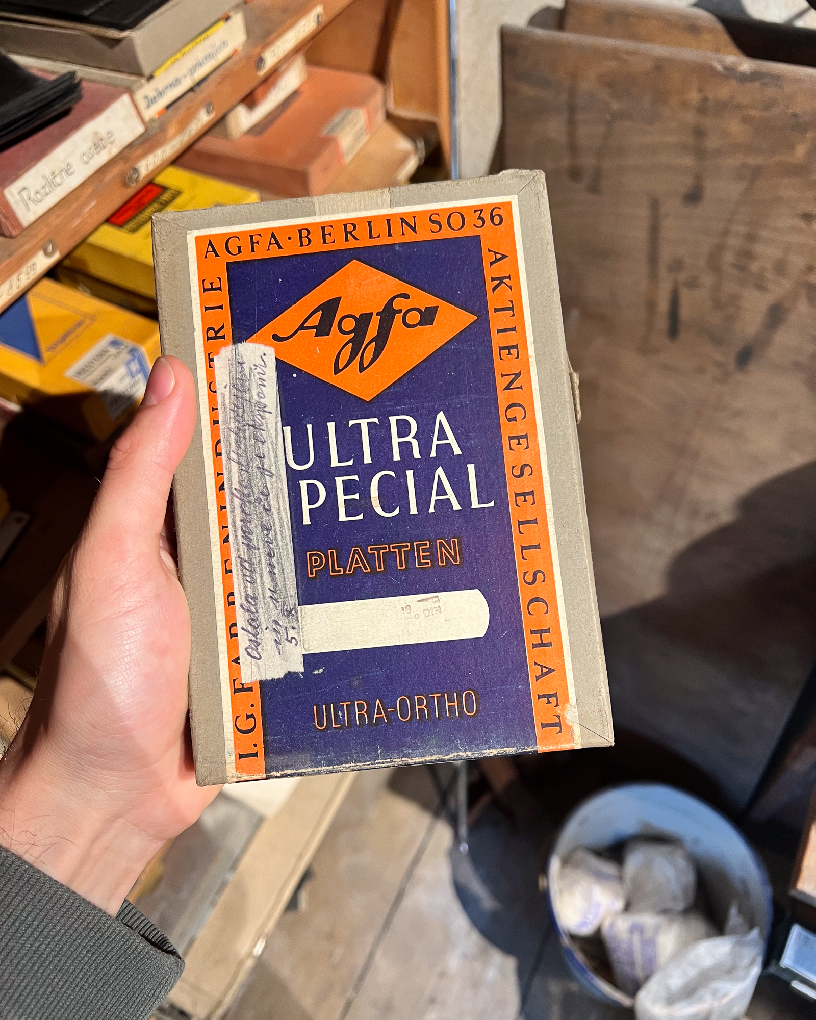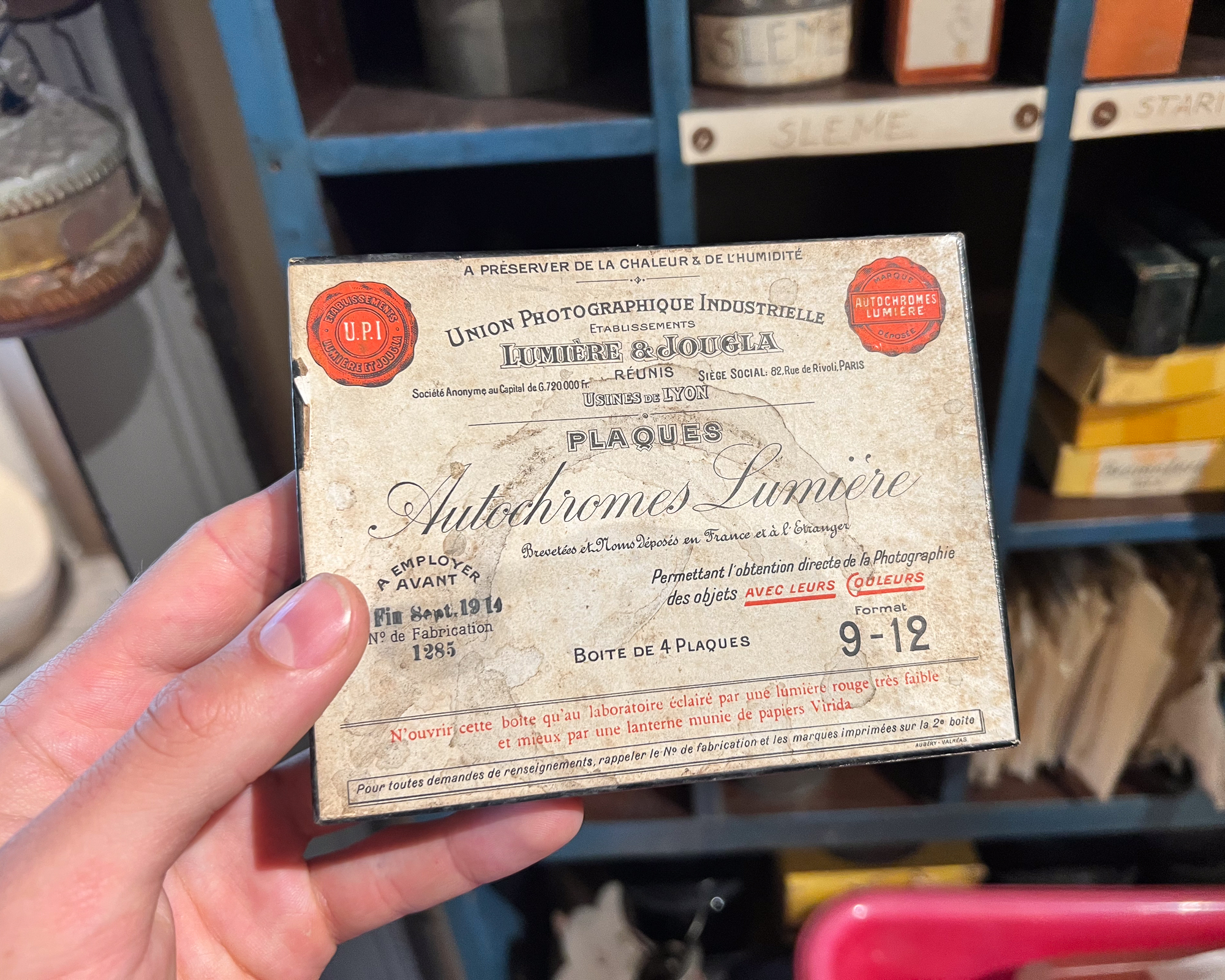 At one point, I even stumbled upon a beautiful old box of Autochromes unfortunately empty, but still, what a find! Maybe it’s a sign that we should start making dry plates again? With our new coating machine soon to be installed… Nothing really feels impossible anymore. 😄
