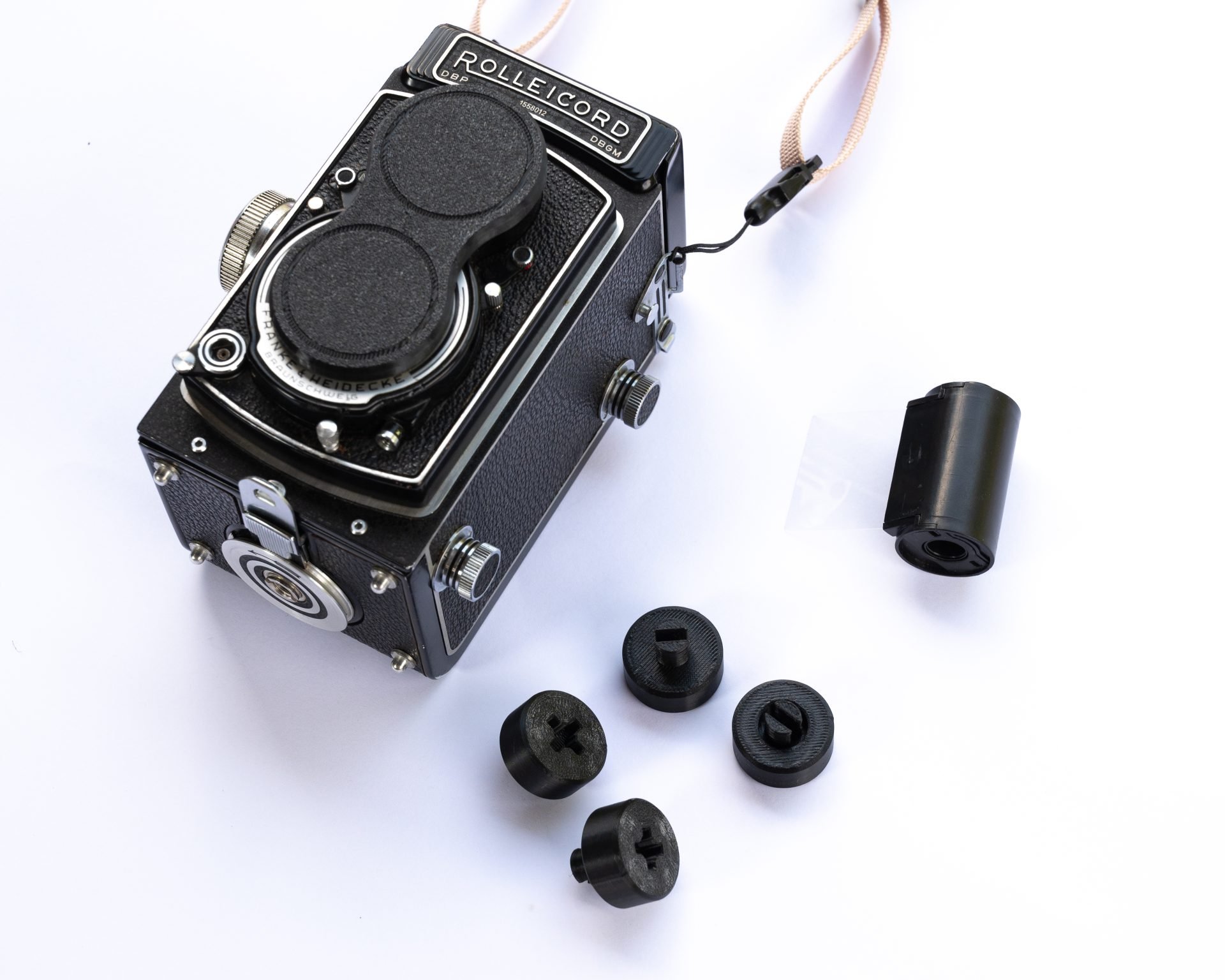 Easily shoot 35mm film in your medium format camera with this Zebra 35mm to 120mm Film Adapter Set! This set includes everything you need to simplify the process—no need for a changing bag or darkroom to rewind your film! Perfect for use with cameras like Pentax, Semflex, Rolleiflex, Mamiya, Plaubel, Hasselblad, Makina, Bronica, Fujifilm, Yashica, Contax, ADOX, vintage folders, and more.