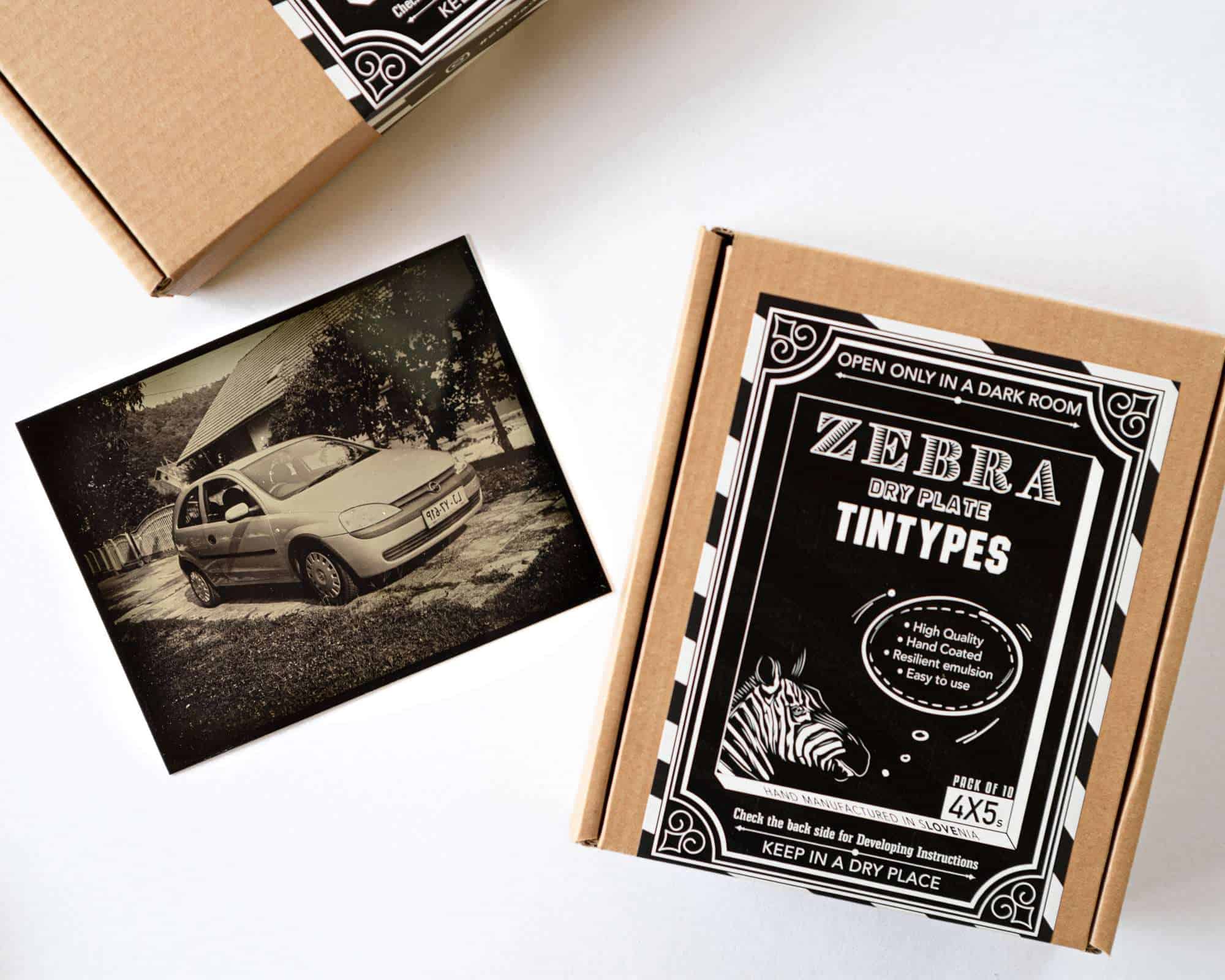 Experience photography like never before with our customisable Zebra Dry Plate Tintypes. Handcrafted with precision, these tin plates are custom cut to meet your desired size and then hand coated with ultra-fine grain Silver Gelatine emulsion sensitive to UV and blue light with a sensitivity of ISO 2 resulting in exceptional image quality and extreme resolution. Each plate promises a beautiful and one-of-a-kind direct positive result like with Wet Plate technique but with great advantages. Simply insert your desired plate size and embark on a personalized Dry Plate Tintype journey.