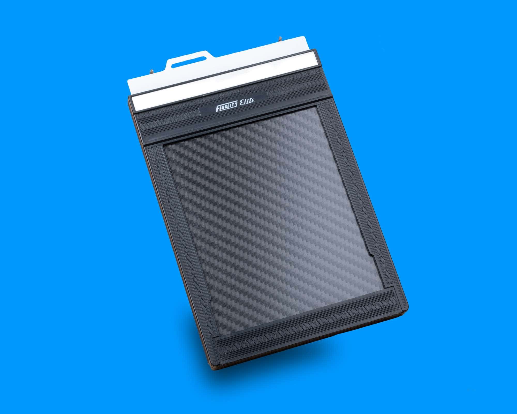 The Zebra 4X5 Universal Sheet Film Holder Dark Slide is compatible with all existing 4×5 sheet film holders like Fidelity, Toyo, Lisco… Crafted from carbon fiber, this dark slide facilitates exceptional durability while remaining significantly lighter than most traditional dark slides. For example they are 50% lighter from Fidelity dark slides.