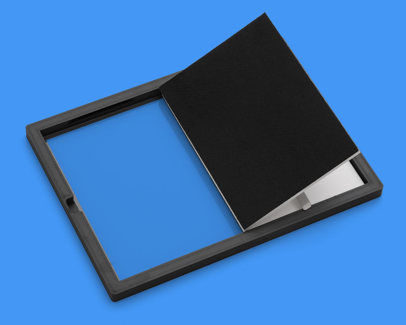 The Zebra A5 (5X7in) Contact Printing Frame is engineered for ease of use, featuring a notch on both sides. This thoughtful addition allows you to lift the back with a finger, eliminating the need to turn the frame upside down or make any other adjustments.