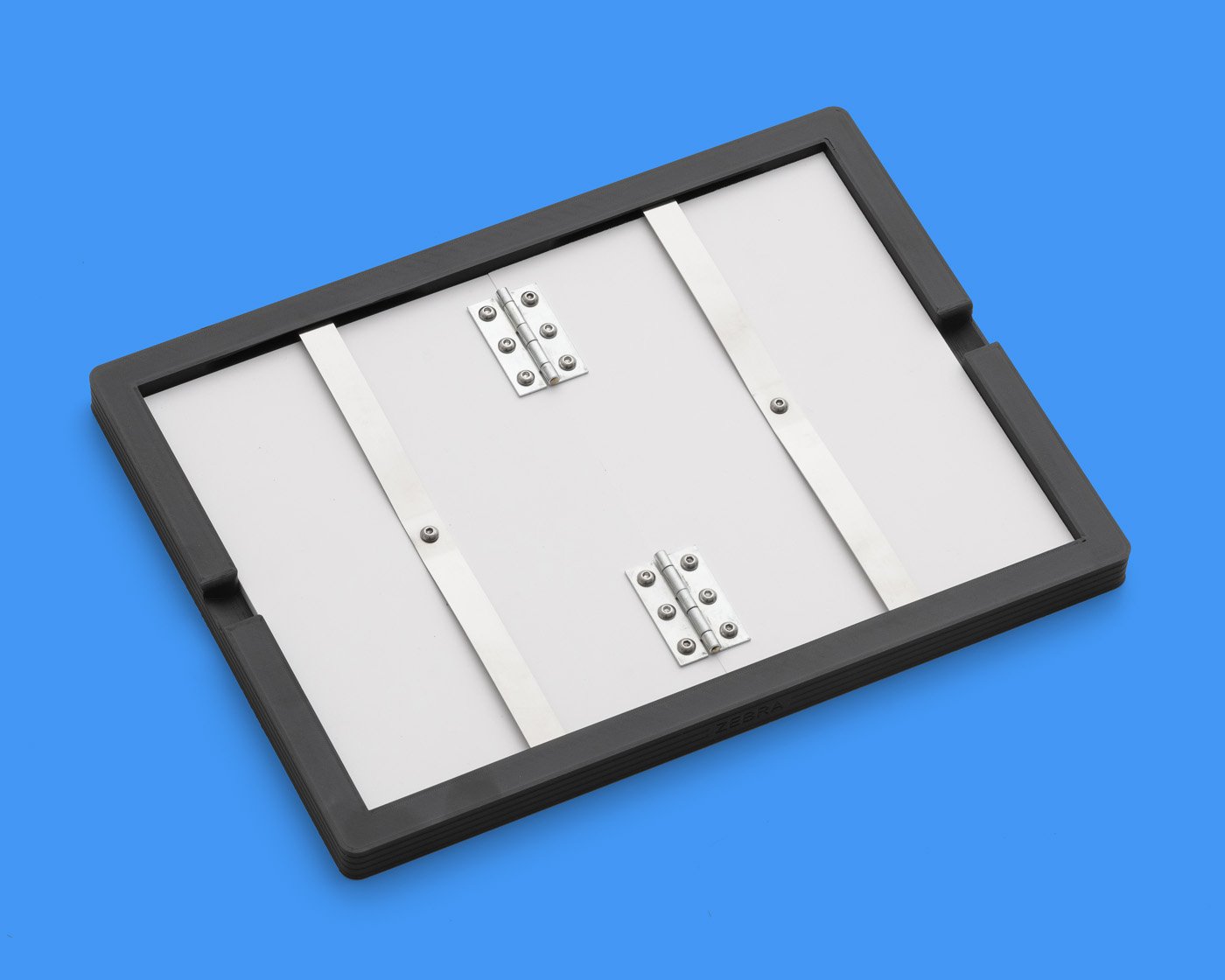 The Zebra A5 (5X7in) Contact Printing Frame is engineered for ease of use, featuring a notch on both sides. This thoughtful addition allows you to lift the back with a finger, eliminating the need to turn the frame upside down or make any other adjustments.