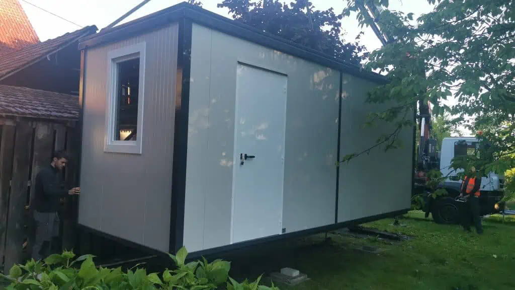 Delivery of the container went quite smoothly, hiab truck had some problems getting to the drop off point because of tight corners but the container was put in place successfully.