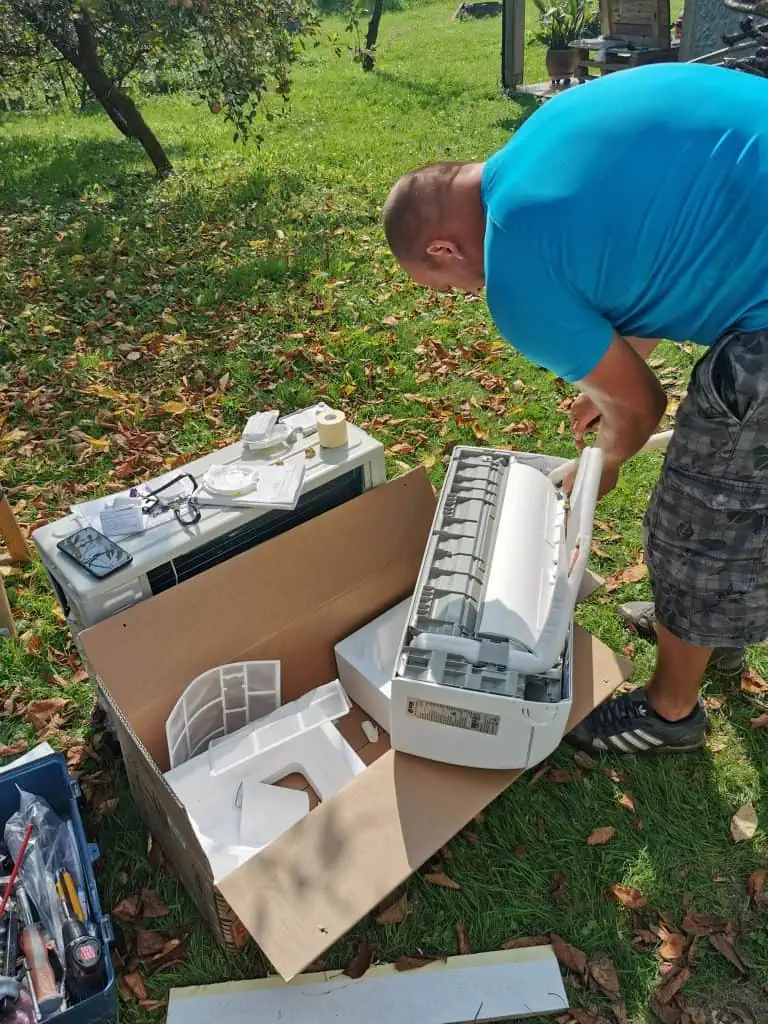 This is where I ran into problems as it was really hard to find everything especially the copper wires. I knew I would need some special tools to connect everything but I thought I would borrow it or just find another way. After a few days of further research I came to the conclusion that I wont save much If I do it on my own and I started looking for a professional installer. I sent inquiries to many companies and rice just to get the pipes installed was still between 200-250eur which seemed a lot to me. Luckily Slovenia is a very small country so there must be somebody I know that knows someone who can help me. I contacted a friend of mine that specializes in installing heating systems and he gave me a contact of his friend who can help me. I contacted him and he said he can come and connect the air conditioning in a few days for around 100eur. We also discussed if there would be a better place to instal the outdoor unit and he said that I can put everything down for now and we will discuss it when he arrives.