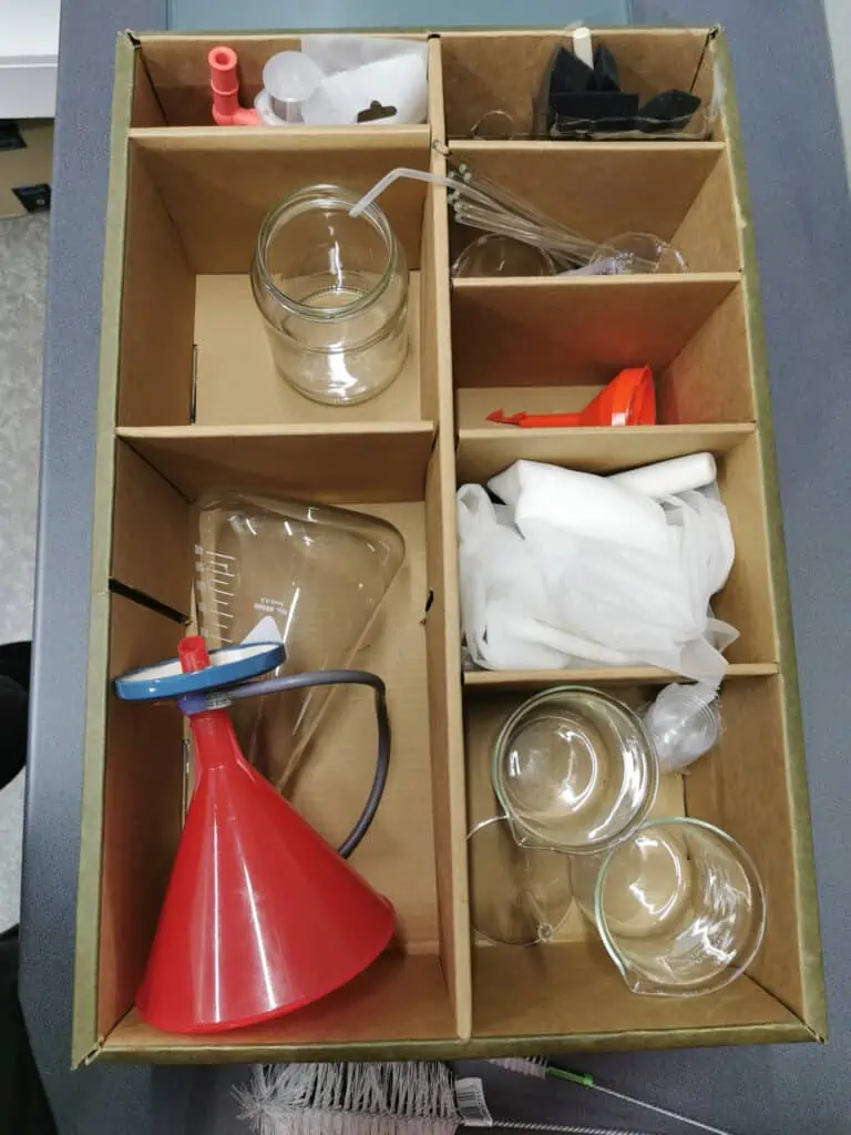 So I started opening boxes and organising my glassware, papers, dry plates… I am always on a lookout for nice cardboard boxes while shopping for groceries and this week I found a very nice box with compartments that fitted in my drawer and became a storage box for the glassware, syringes and mixing rods. There is still a lot of work to be done and the next thing I will be doing is putting in order all the chemicals. I would like to make a list of all the chemicals I have with their quantities so I know If I have enough for the projects I do or not . I am doing all kinds of stuff from emulsions, mixing my own developers, autochromes, etc. so believe me there are many chemicals there.