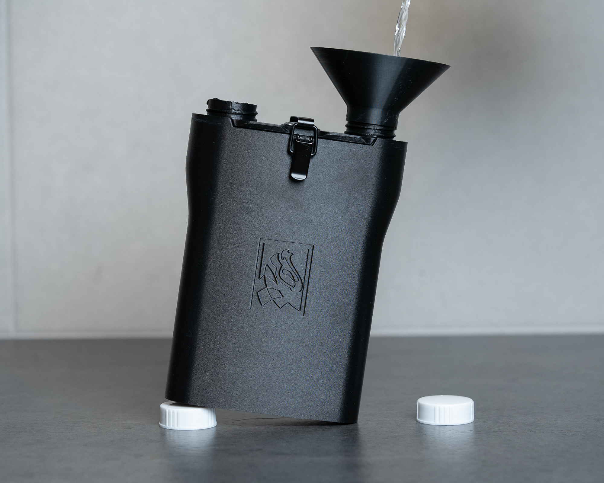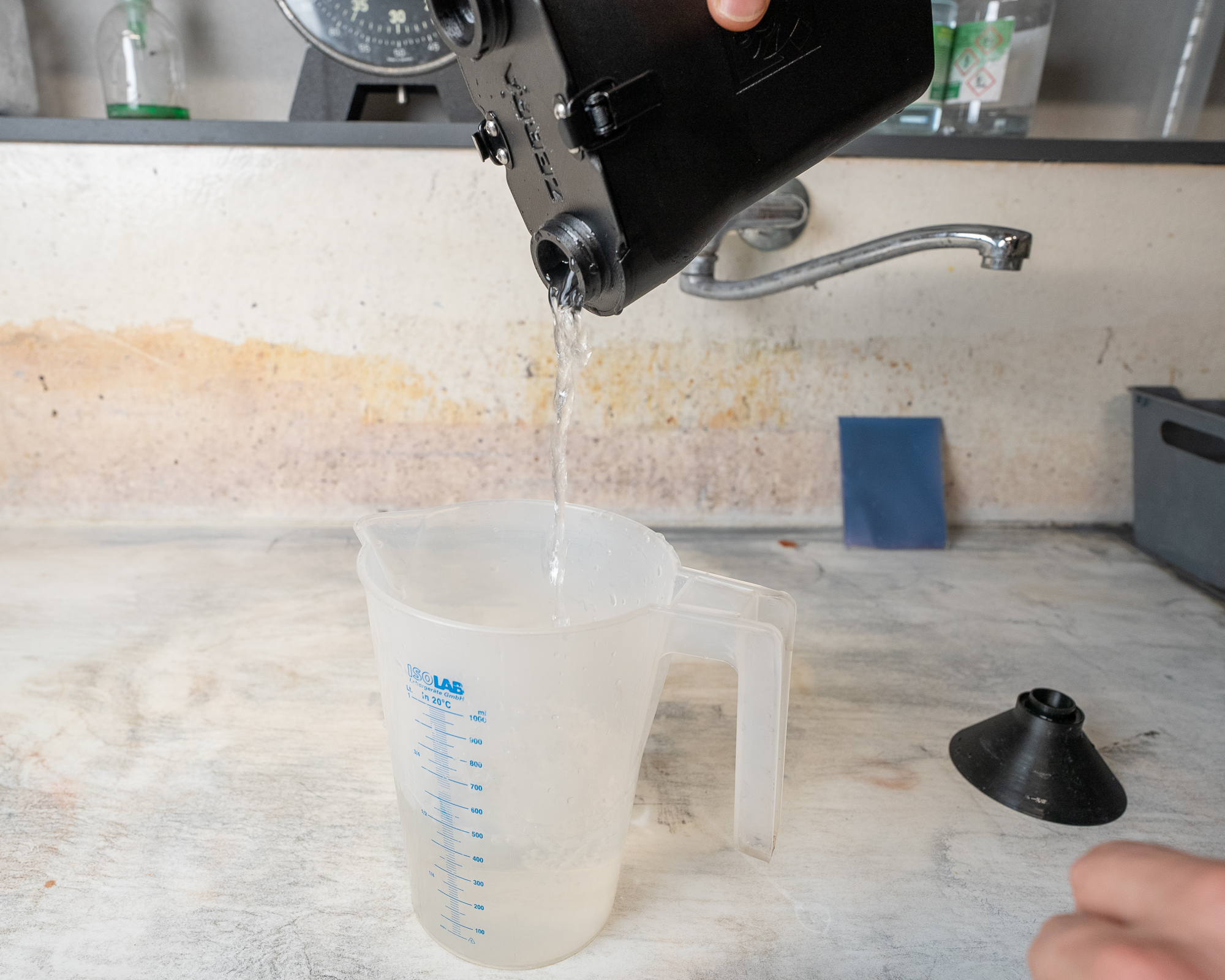 A funnel is included with the tank to assist with fast, continuous filling. Always use it and avoid pauses during pouring.