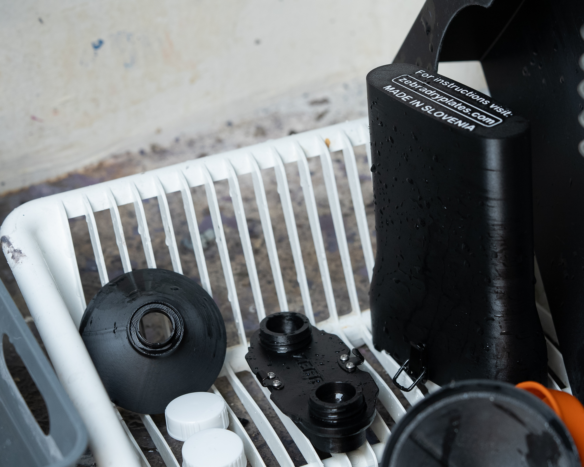 After each processing session, thoroughly rinse the tank body, all adapters, and the lid using warm to hot tap water to remove any remaining chemical residues. Pay special attention to the lid, as it contains a more complex light-trap system where chemistry can accumulate. It is recommended to fully submerge the lid in fresh water and repeat the rinsing process several times to ensure all residues are removed.